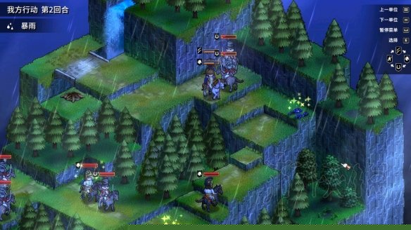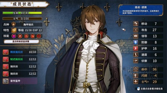 第一回合,因为胸甲的被动,15级的德赛跑起来三格加了2点护甲和第一个重骑对砍刚好无伤,然后装备上十五章送的蓝色骑士剑,正好能砍死下方冲上来的轻骑。