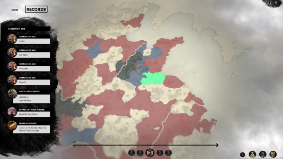 2.装备与宝物:除了已知的产良马、武器和盔甲点以外,个人感觉长安的玉石矿占领之后,玉石类宝物会逐渐增多,另外部分随从和宝物是有套装效果的,如果没有高级的宝物,弄出套装效果也不错;