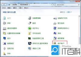 在控制面板中,找到并点击“用户账户”选项。
