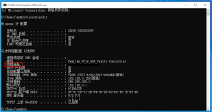 3. 在命令输出结果中,找到“ether”后面跟着的一串字符,这就是电脑的mac地址。