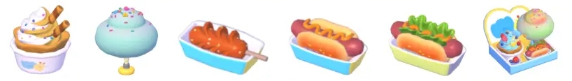 稚趣园活动食谱包括:香草华夫冰淇淋、原味云朵糖、乐园烤肠、乐园热狗、开心乐园餐