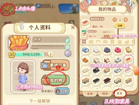 通过售卖复数家具获取金币,同时角色升级、搬家也都有金币奖励