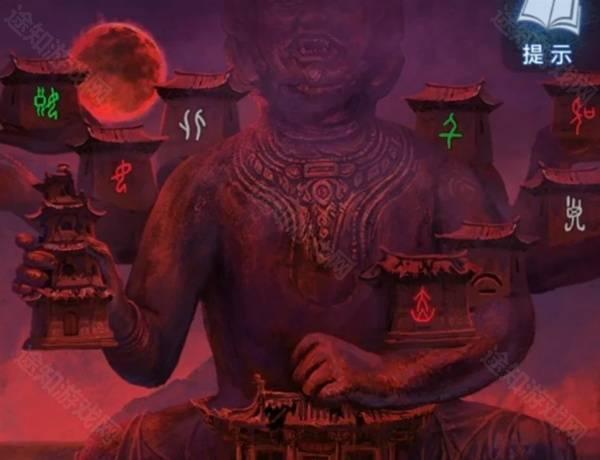 再来到高处的庙,将【布画】铺在傩面前的祭台上,使用一下【法器】就能起风了,虽然不知道有什么用,然后切换到红色世界中间庙门也开了,进入后是很多墓碑,我们随便点一下就能拿到前面的物品,然后有个向右的箭头,我们挨个箭头点挨个拿把所有的玩具都拿到手,注意最后一个墓碑又是小高能,怎么有种似曾相识的感觉?总之玩具都拿到后我们就需要按照墓碑上文字提示的放入对应玩具了。