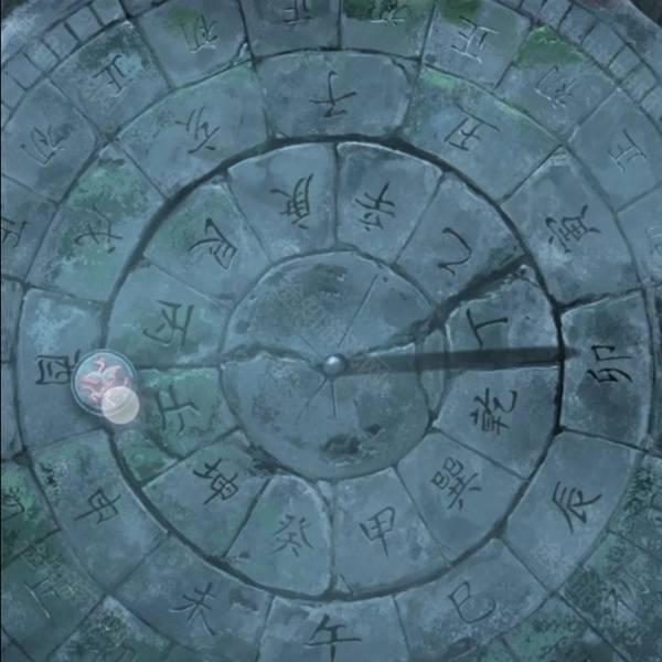 切换到白色世界,来到树下有两个挖好的坑,把【长条种子】放在左边的坑里,然后调整右边的季节盘到【春-春分】,调整日晷的影子让影子落在【申】上面,注意申再中间的一圈哦,完成之后种子发芽了,切换到红色世界查看树就能拿到一个【桃形果实】。