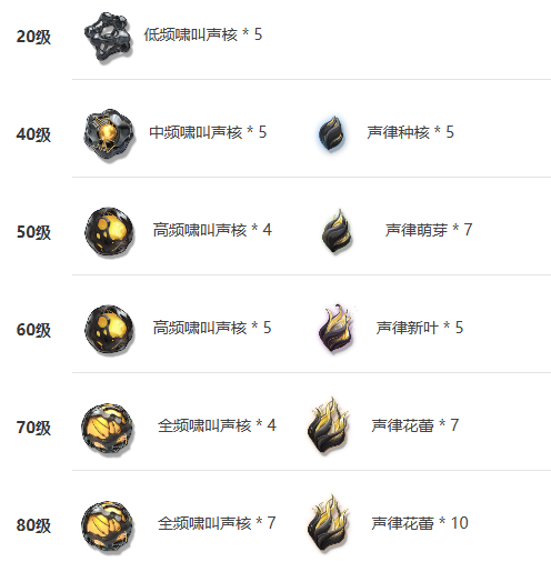 50级→高频啸叫声核 * 4、声律萌芽 * 7
