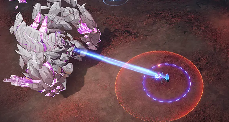 Boss标志性技能“碎地重拳”具备精准锁定功能,会选定一台遗迹装置并在其周围展开矩形范围伤害。被锁定的装置将进入不可移动状态,此时必须由至少5名玩家共同分摊该次攻击,否则将触发防御协议反制,造成额外减员风险。该技能附带强击退效果,建议利用地形高低差或墙体遮挡,控制击飞轨迹,防止坠落减员。