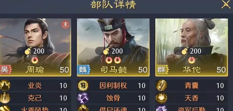 兵种搭配统一采用3S级弓兵,依托远程攻击距离优势规避近战突袭,同时凭借高额基础输出压制敌方前排坦系单位,为甄宓创造安全施法环境。兵法系统中,30级回怒类兵法为必选配置,其提供的固定怒气回复量是维持甄宓技能循环节奏的核心保障,不可被其他功能型兵法替代。