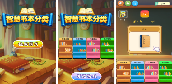 一款集知识学习与思维训练于一体的图书分类趣味游戏。界面简洁直观,滑动屏幕即可浏览各类书籍,操作轻松便捷。启动后,页面上方会随机显示多种书籍类型,如历史、文学等。玩家需将绘本、故事书等内容正确归类,判断准确可得分进入下一关。这种玩法不仅考验知识掌握程度,也锻炼了逻辑推理能力,是一场寓教于乐的学习之旅。