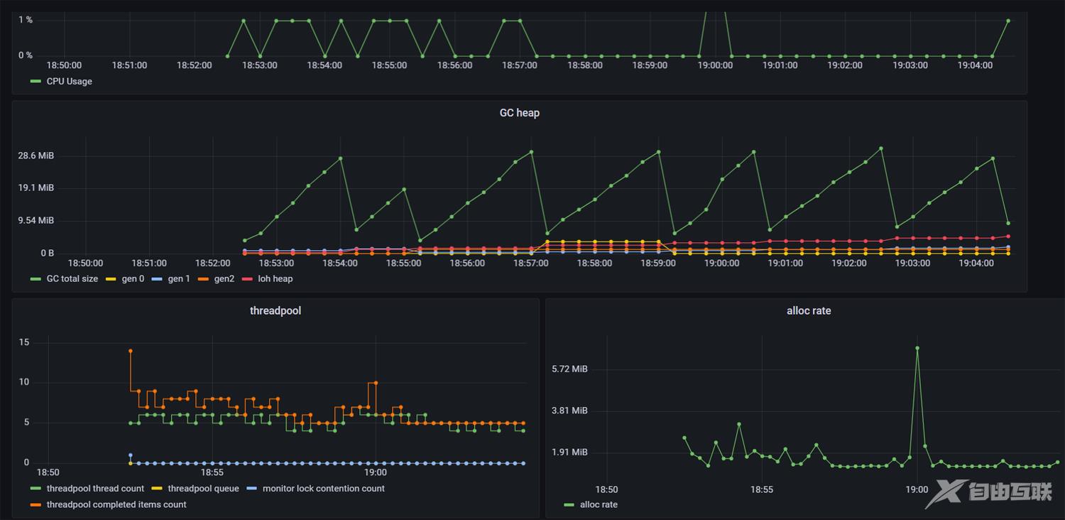 CZGL.ProcessMetrics 是一个 Metrics 库,能够将程序的 GC、CPU、内存、机器网络、磁盘空间等信息记录下来,使用 Prometheus 采集信息,然后使用 Grafana 显示。
