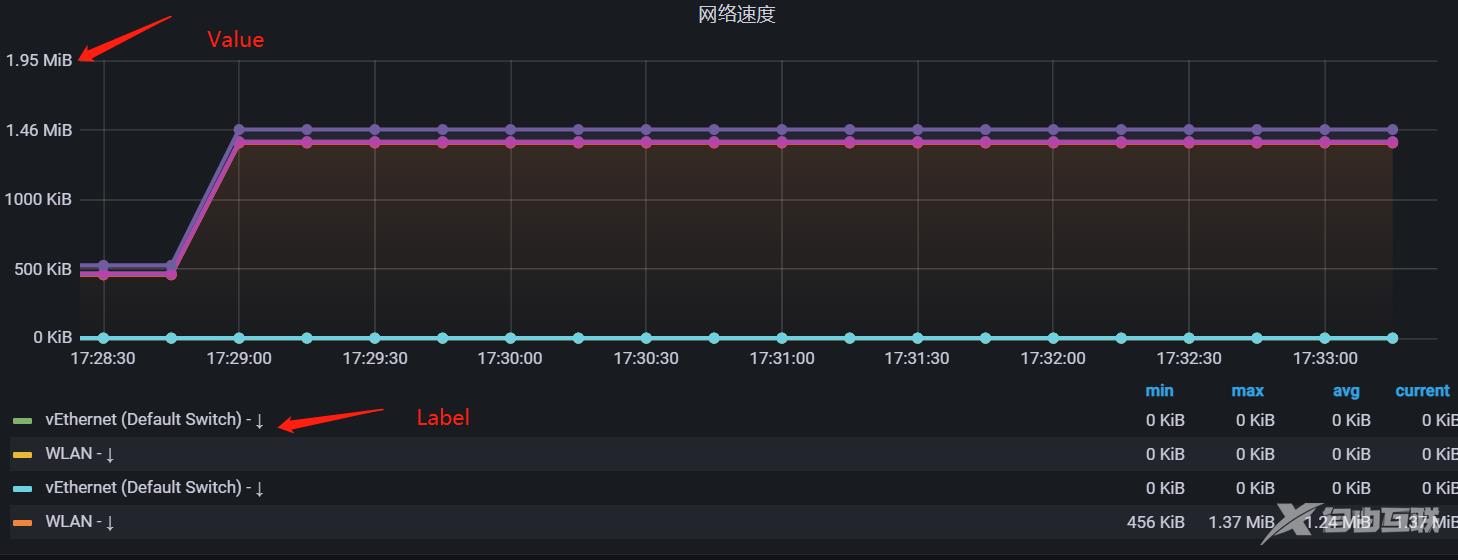 自定义标识用于显示一些特定的信息,Value 则显示具体的值,Label 可以定义多个,但是 Value 只会出现一次。例如: