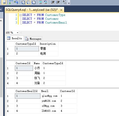 下面以客户类型、客户和客户邮件三个实体之间的关系来讲解两种加载方式。