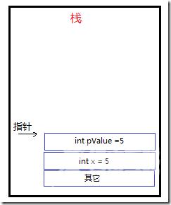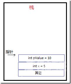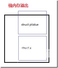 假设以上的值类型struct足够大,而x和pValue都会被分配到"栈"上,这时可能造成"栈溢出"。