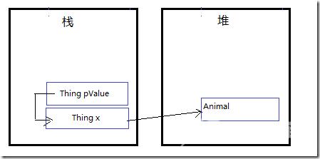 以上大致过程是这样:1、在托管堆上创建Animal对象实例。2、在栈上创建类型为Thing的x变量指向Animal实例的引用地址。3、通过Switcharoo(ref x)方法把x本身的地址赋值给pValue,至此,pValue和x指向了相同的栈内存地址,任何一方的变化都会反映到另外一方。
