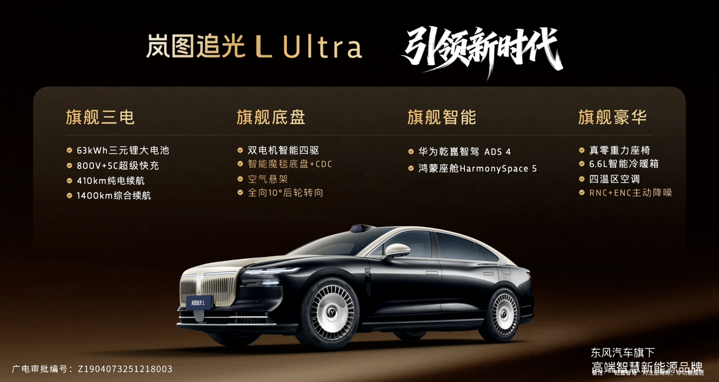 12 月 10 日消息,岚图追光 L 豪华轿车今晚正式上市,新车提供两种不同配置,售价区间为 27.99 万-30.99 万元。