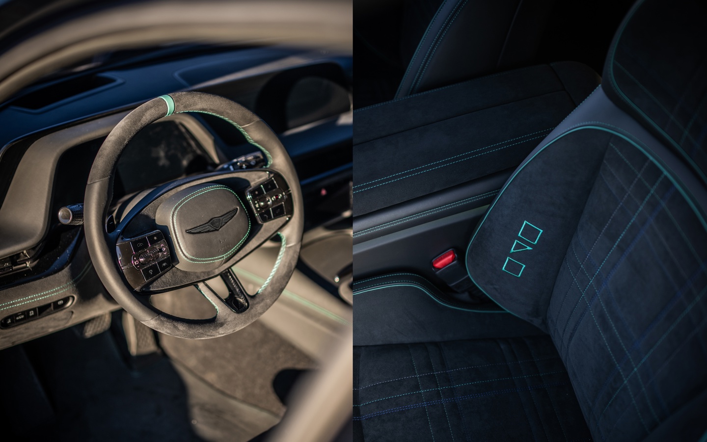 车内部分使用 Chamude “类麂皮”材质,风格更简洁,同时以绿色滚边、绗缝和缝线提升细节质感。方向盘造型精致,座椅包裹性显著增强,整体呈现兼具运动与高级感的氛围。