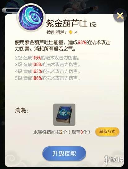 分析:在满层般若的加成下,紫金葫芦吐所造成的伤害将非常恐怖。推荐优先升级。
