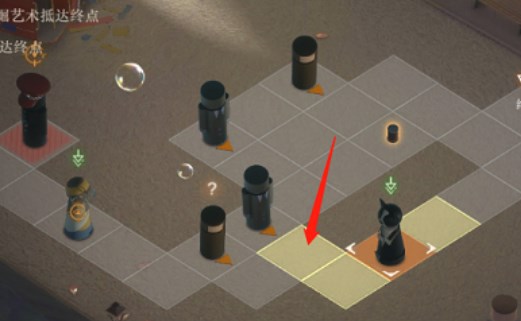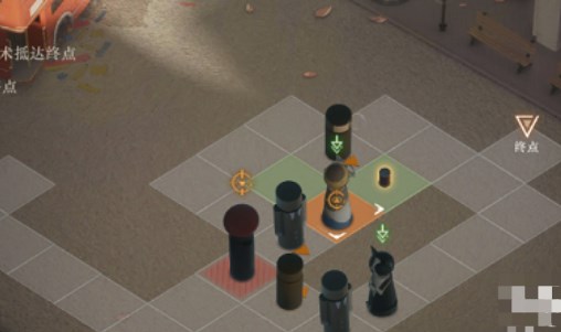 2、然后我们就可以一直控制角色A走到下图这个位置,到这里我们面前会出现一个道具,然后身后是游客C,这里游客C会把警察挡住一个回合。