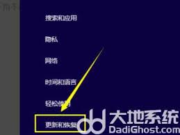 - 在“电脑设置”窗口中,选择“更新和恢复”选项,然后点击“恢复”。
