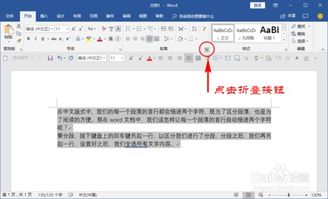 3. 点击“段落”区域右下角的小箭头,打开“段落”对话框。