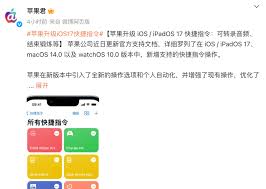 在2023年,苹果公司发布了备受期待的ios/ipados 17版本。这个更新不仅带来了界面和用户体验的优化,还引入了一系列强大的新功能,特别是对快捷指令的支持进行了大幅增强。通过这篇文章,我们将一起探索ios/ipados 17中新增的快捷指令操作,了解它们如何帮助我们更高效地管理日常任务。