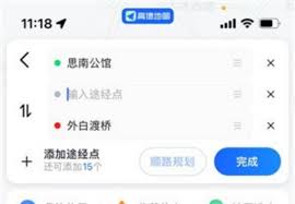 在导航规划页面中,点击屏幕下方的“+”图标或途经点按钮,就可以开始添加途经点了。在这里,您可以依次输入想要访问的所有地点名称或者直接在地图上长按标记位置。高德地图会自动计算包含所有途经点在内的最短路径。