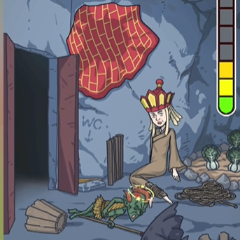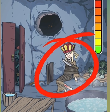 3、把锅砸了,妖怪进来就会被门上面的木桶砸到。