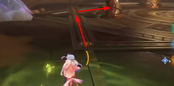 1、我们来到下图机关解密位置,朝着西北角拾取第一个【灵芯】。