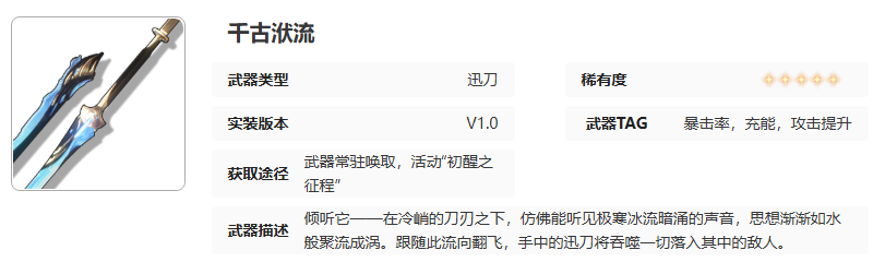 鸣潮武器千古洑流培养材料是什么?千古洑流是5星武器,类型为迅刀。倾听它——在冷峭的刀刃之下,仿佛能听见极寒冰流暗涌的声音,思想渐渐如水般聚流成涡。那么接下来就跟着小编一起来了解一下《鸣潮》武器千古洑流培养材料一览。