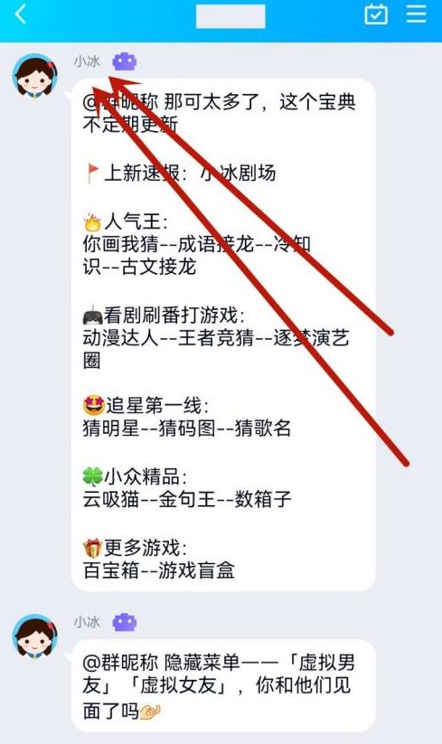 4、这时就可以在群内开启小冰,根据需求选择要玩的游戏即可。