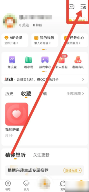 进到我的页面,选择顶部“开启免费畅听”图标。