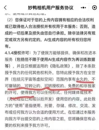 “妙鸭相机”此前的用户协议截图