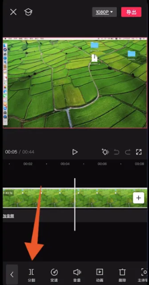 4、点击下方的【剪辑】按钮后,再点击里面的【分割】按钮。