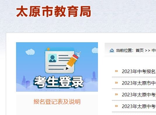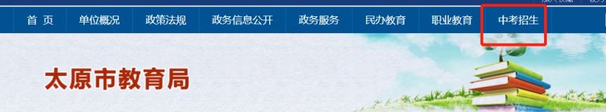 步骤2:登录太原市教育局官 网后,在首页栏中选择【中考招生】;