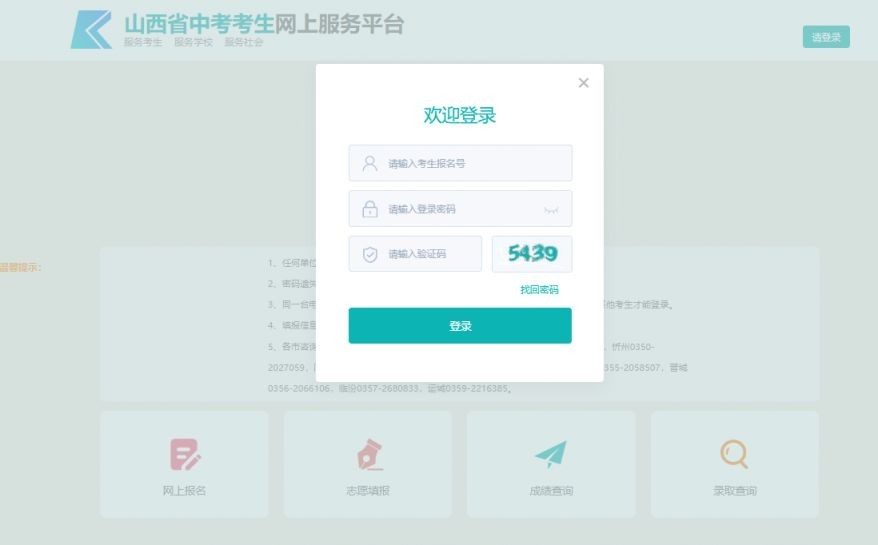 步骤4:点击【考生登录】进入【山西省中考考生网上服务平台】,按照提示输入考生相关信息;