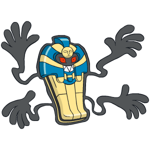 剑版:在海底飘荡的海藻吸收了沉船的零件后转生而成的幽灵宝可梦。