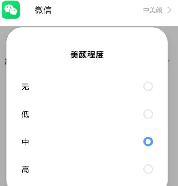 比如像vivo手机,打开后还可以对美颜程度进行调节,有低中高三项。