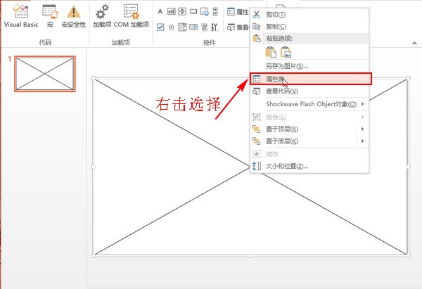 用鼠标左键从当前ppt的左上角一直拖动到右下角,形成如下图所示的效果,然后在空白处右击,在弹出的菜单中选择“属性表”。