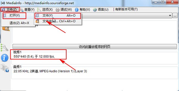 现在需要知道swf视频文件的画面分辨率,选择“文件”菜单下“打开”后面的“文件夹”,找到并打开swf视频文件,打开之后就会在软件界面下方出现相应的分辨率参数。