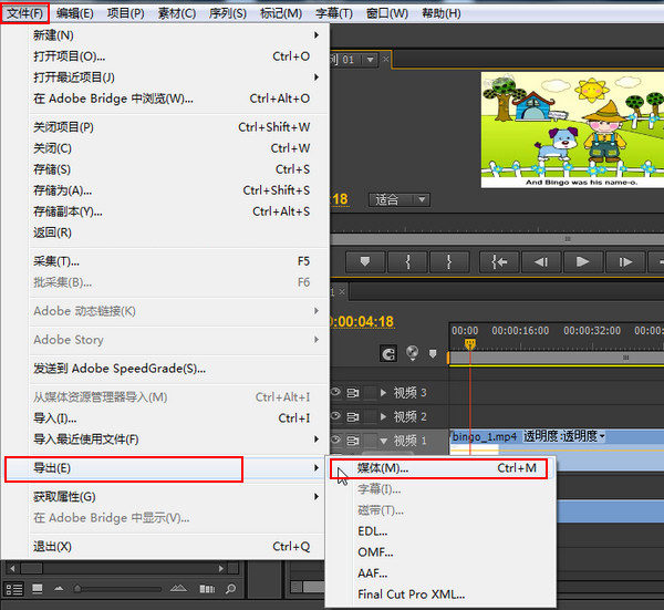 选择“文件”菜单下面的“导出”,然后再选择“媒体”,该软件不能以MP4格式进行导出,如需转换成MP4格式可以用狸窝全能视频转换器进行转换。不过该软件导出的格式也是够用了的。