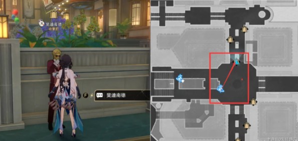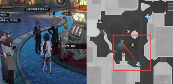 1、玩家来到下图位置,在这里互动旁听对话,然后游玩一次。