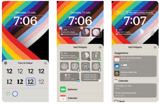 苹果不仅更新了默认的数字时钟字体,而且还添加了一个全新的自定义选项,可更改字体和字体颜色。选择壁纸后,将进入上方的自定义屏幕。点击数字时钟图标以切换到不同的字体和颜色。