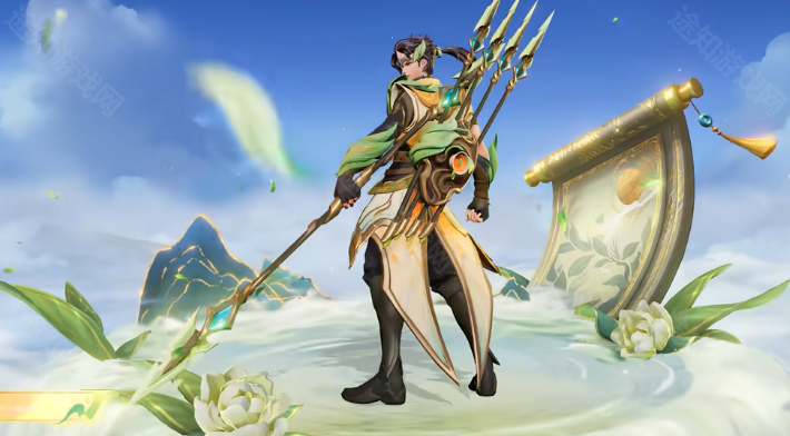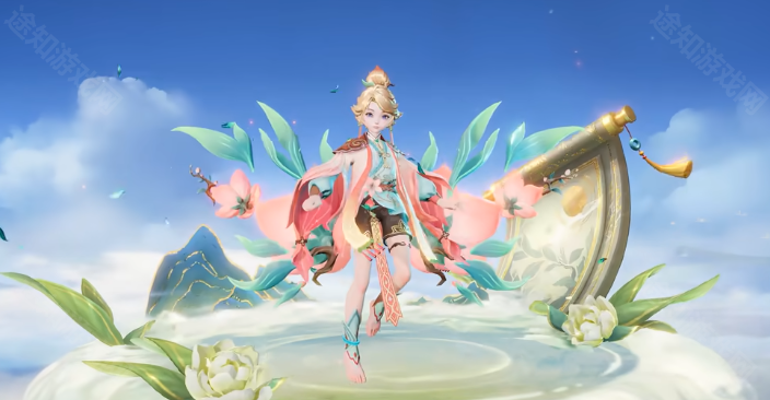孙膑化身不染尘俗小茶仙,茉莉花苞般的发髻腼腆又纯真,腕间佩戴芬芳盈袖的茉莉手串,背后是茉莉花朵错落排布而成的轻盈翅膀,快扇动扇动~让我们跟随小茶仙一起去寻观红尘诸事吧。