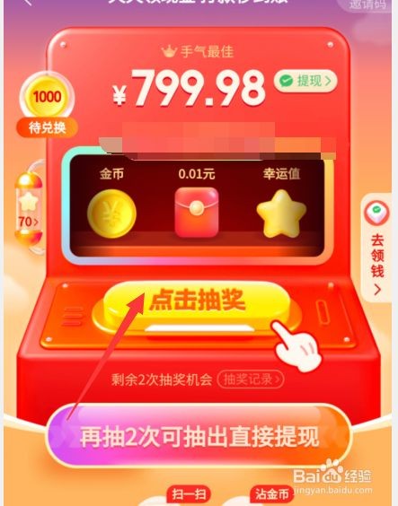 现钱大转盘活动下,用户可用金币兑换随机现钱,对于快要到提钱门槛的用户可采用这个方法。