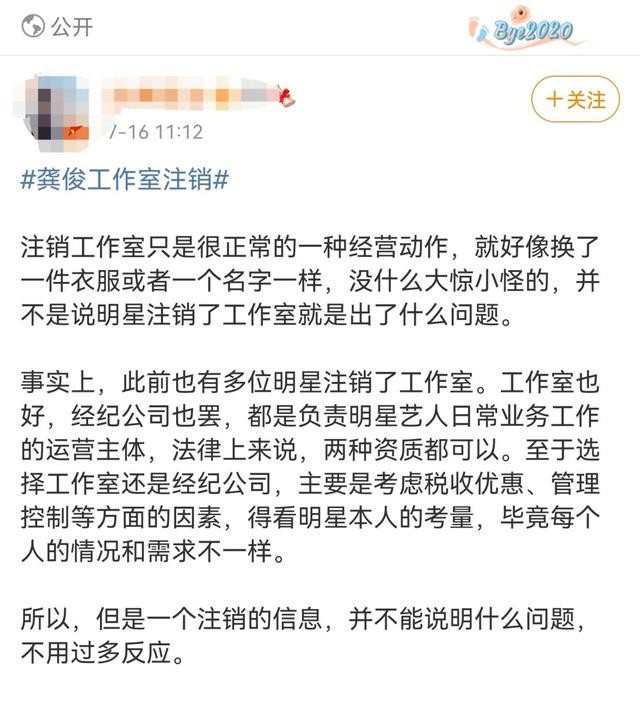 明星注销工作室,第一个是为了减少税费,第二个就是为了扩大规模。如今,正是龚俊老师的事业上升期,他不能单打独斗,需要让自己的工作室更配得上自己的人气。