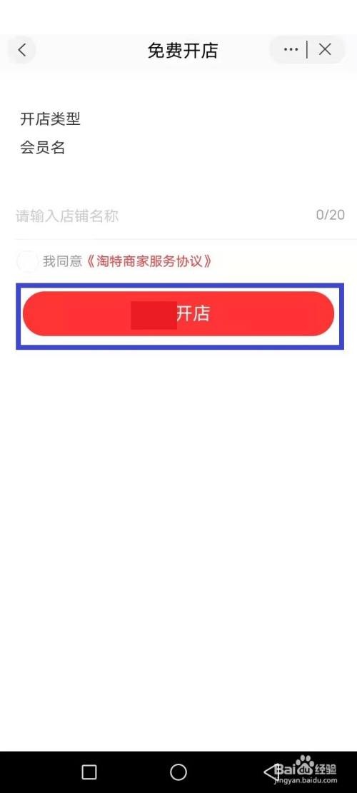 选择个人或企业入驻开店,输入店铺名称等信息,点击开店。