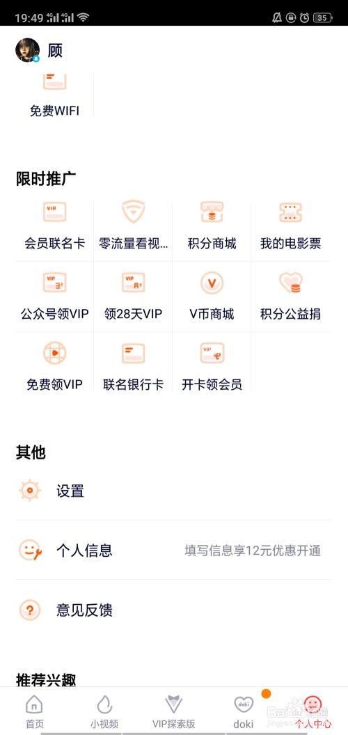 1、首先我们需要下载一个腾讯视频app,打开腾讯视频app,进入到操作页面,我们可以看到视频推荐的下方(操作页面的下方)点击“个人中心”选项,进入下一步操作步骤。