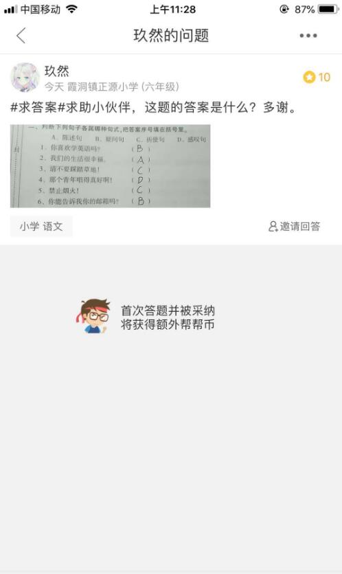 APP里面有个社区功能,用户会分享自己的难题到社区里面,如果你回答了他们的问题,就可以获得10个帮帮币的奖励。