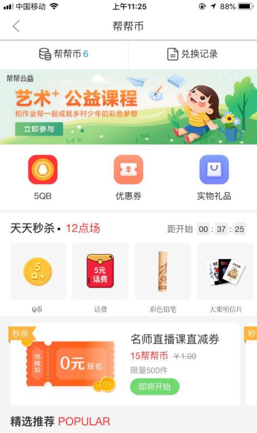 2、帮帮币可以用来向学霸提问,还可以在帮帮商城兑换礼品、优惠券及参与抽奖。