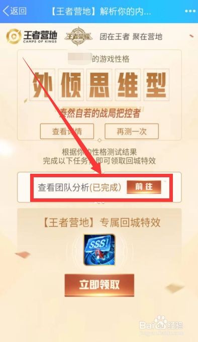 4、测试完成后,我们下方点击【领取营地回城特效】按钮。进入领取界面。