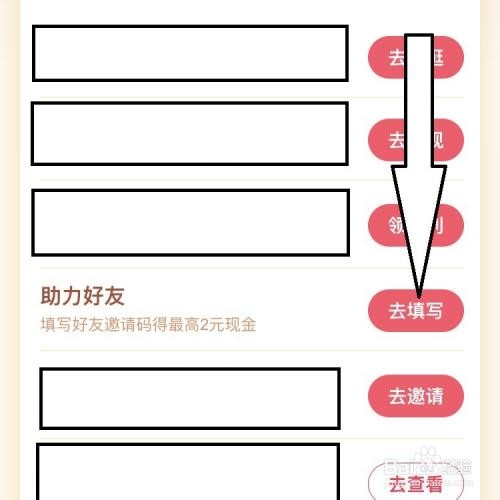 4、在出现的页面我们点击助力好友旁边的去填写,进入下一步。